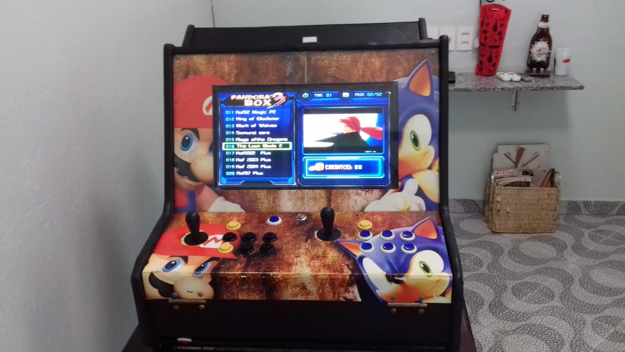 Clássicos do Fliperama no Seu Evento! Leve a nostalgia dos jogos eletrônicos clássicos para a sua festa e divirta seus convidados com desafios emocionantes! Com uma ampla seleção de games de luta, corrida, esportes e aventura, essa máquina garante diversão para todas as idades.